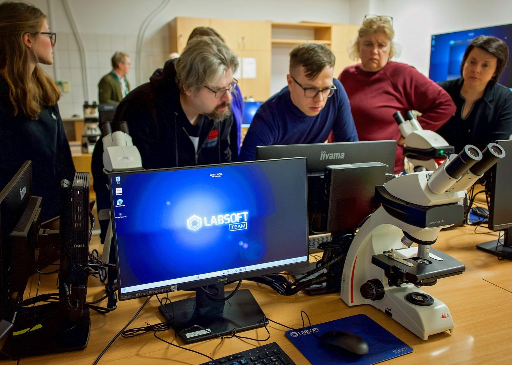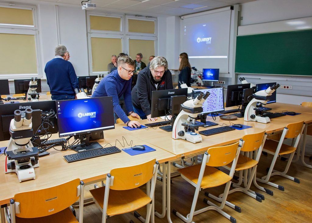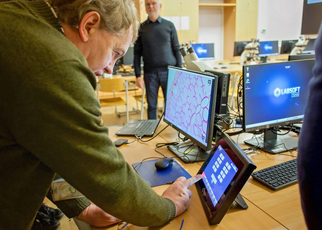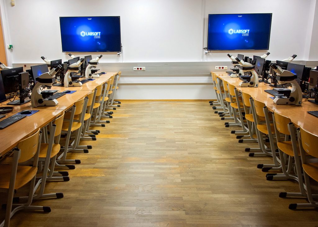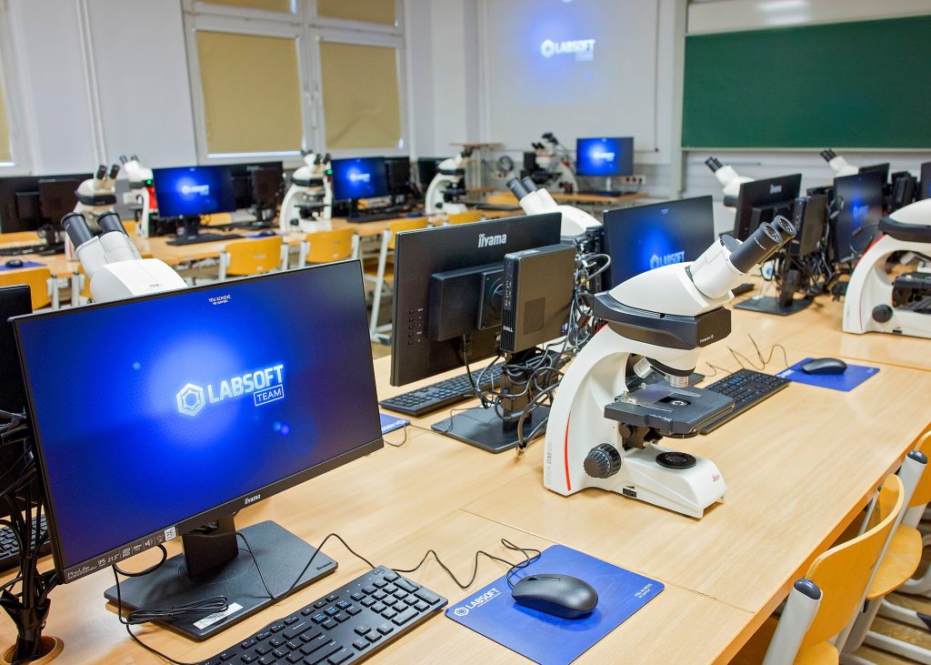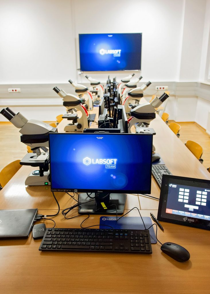 Dzięki doposażeniu dotychczas posiadanych mikroskopów studenckich Leica DM500 w nowoczesne kamery cyfrowe z funkcją HDR istnieje możliwość zobaczenia i akwizycji obrazu z każdego stanowiska studenckiego (system pozwala również na wyświetlenie takiego obrazu na stanowiskach pozostałych studentów oraz na monitorach naściennych i ekranie rzutnika!).